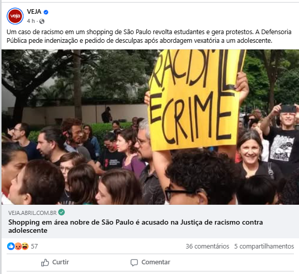 O processo tramita em segredo de Justiça para preservar a identidade da vítima. Alunos de uma mesma escola particular foram à praça de alimentação do shopping, que fica em uma área nobre da região central da capital paulista. Em uma mesa, estavam uma estudante branca e dois estudantes negros. Segundo a petição inicial, à qual VEJA teve acesso, uma pessoa da empresa de segurança, que é uma terceirizada pelo shopping, abordou os dois estudantes negros, falando que eles “não podiam pedir dinheiro” ali. Ainda de acordo com a ação, a segurança também perguntou à adolescente branca se ela estava “incomodada” com a presença dos dois colegas.