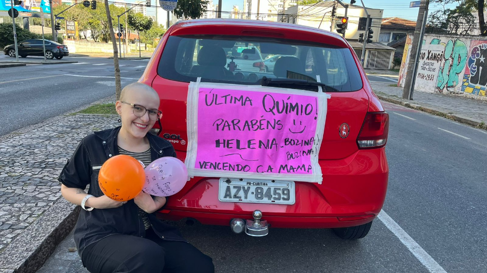 “Estávamos juntando força pra comemorar e para dar um grito de ‘acabou’ [o tratamento da mãe], mas descobrimos que ainda não tinha acabado, pois eu também estava com o diagnóstico e íamos ter que passar por todo o processo de novo, agora eu sendo paciente, não cuidadora”, conta Helena. Em 17 de janeiro de 2024, Letícia Colino, mãe de Helena, fazia sua última radioterapia e, no dia seguinte, a filha iniciava a quimioterapia.