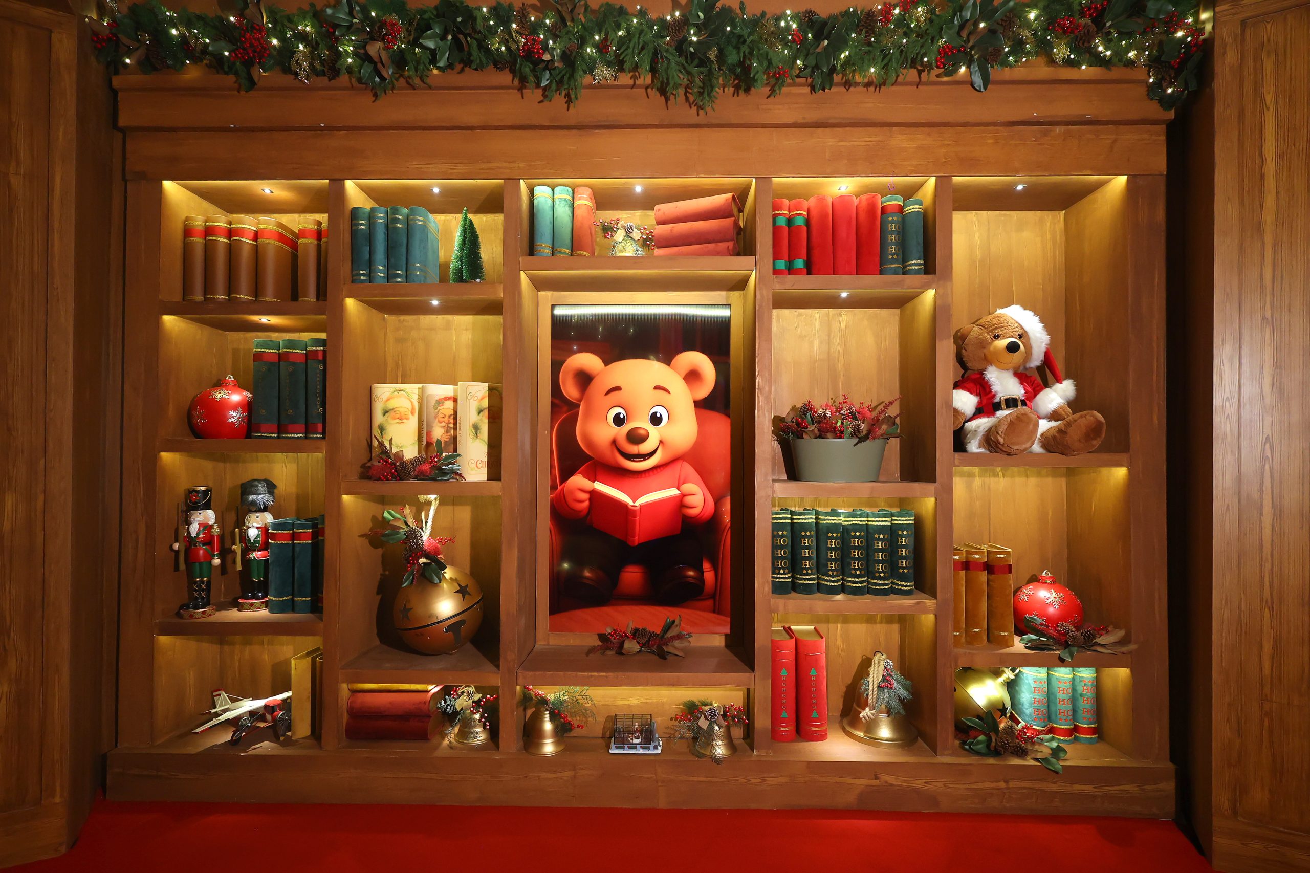 A árvore central, com 25 metros de altura e iluminada por 650 mil luzes de LED, é rodeada por estantes repletas de livros e brinquedos, onde ursinhos escalam as prateleiras em busca das histórias mais especiais. Da cúpula de vidro pendem grandes caixas de presente, bolas decorativas e ornamentos nos tradicionais tons verde, vermelho e dourado. A estrutura completa soma cerca de 24 toneladas e conta com mais de 900 mil luzes, compondo uma das mais grandiosas decorações de Natal da cidade.