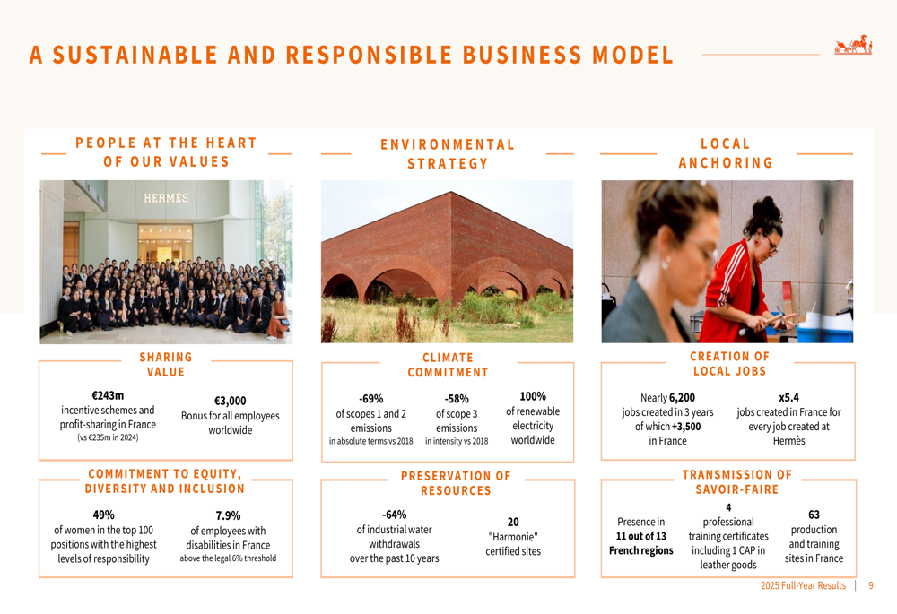Essas validações externas reforçam a posição da Hermès como líder em luxo responsável, com práticas ambientais e sociais fortes complementando seu desempenho financeiro.