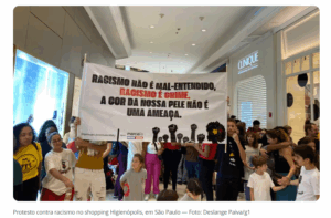 SP institui protocolo antirracista para grandes estabelecimentos comerciais, mas vetos reduzem exigências17/03/2026 Protesto contra racismo no shopping Higienópolis, em São Paulo